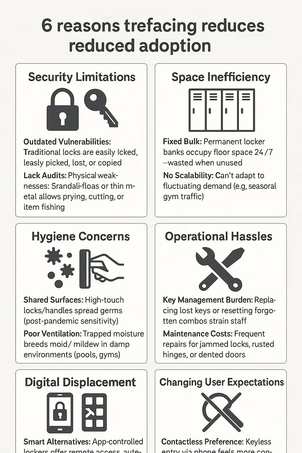 Vanhentuneet haavoittuvuudet: Perinteiset lukot (avaimet/yhdistelmävalitsimet) on helppo poimia, kadota tai kopioida.